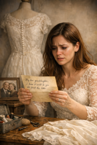 It wasn’t the fabric — ivory silk softened by decades — but the way it held history inside its seams. When I lifted it from the garment bag, a faint scent rose with it. Lavender sachets. Cedar. And beneath that, something warmer. My grandmother’s perfume, though she’d worn so little of it that I’d mostly known her by the smell of flour and starch and peppermint lozenges.